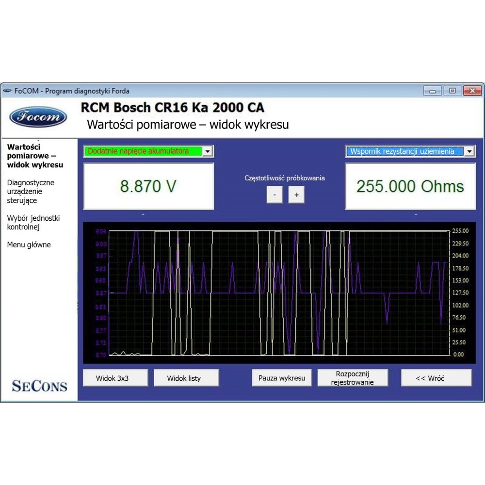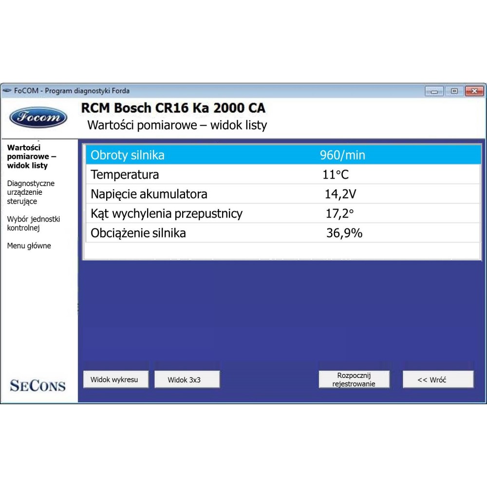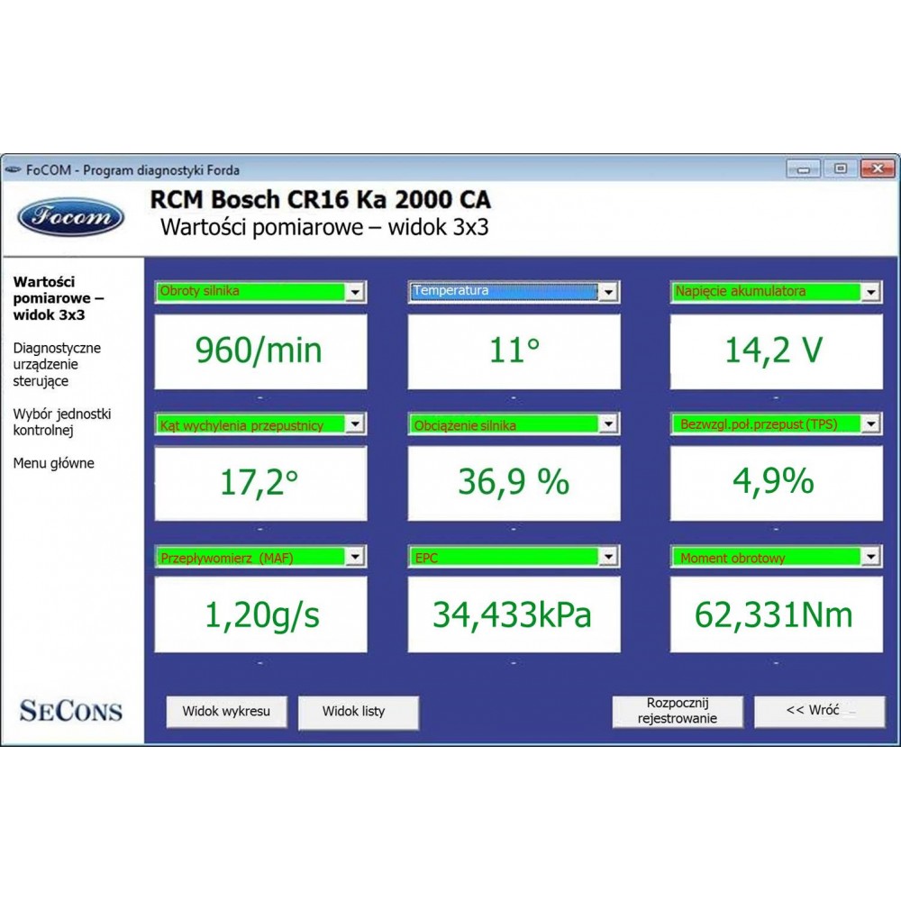 Interfejs diagnostyczny umożliwia dokonanie pełnej, profesjonalnej diagnostyki w zakresie: