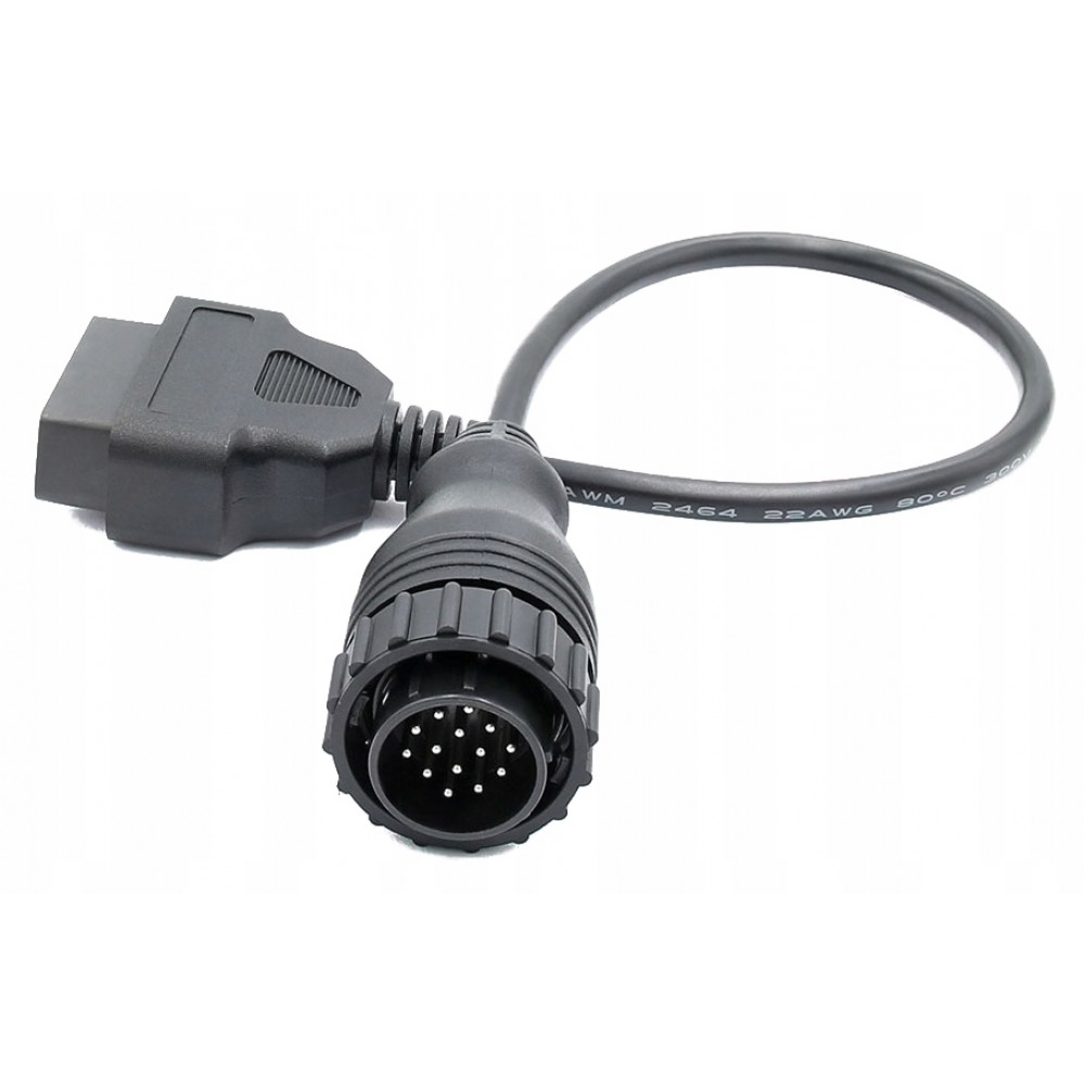 Adapter / przejściówka z OBD2 (16 pin) na Mercedes 14 pin, służy do podłączenia starszych modeli pojazdów wyposażonych w złącze diagnostyczne starego typu (tzw. OBD1).