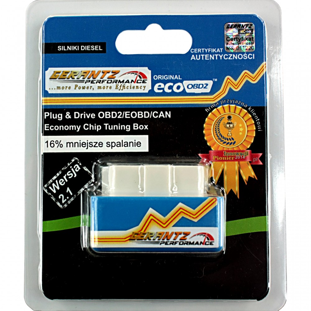 Jest to Chip, który jest podłączany do gniazda OBD2 w celu zwiększenia wydajności pracy silnika pojazdu co wiąże się z obniżeniem zużycia paliwa. Urządzenie to nie przekracza wymagań producenta oraz działa tylko w granicach tolerancji danego silnika. Jest prosty w użyciu i pozwala na całkowicie bezpieczną formę tuningu. Chip Eco OBD2 to produkt wysokiej jakości, drukowany w technice SMD.