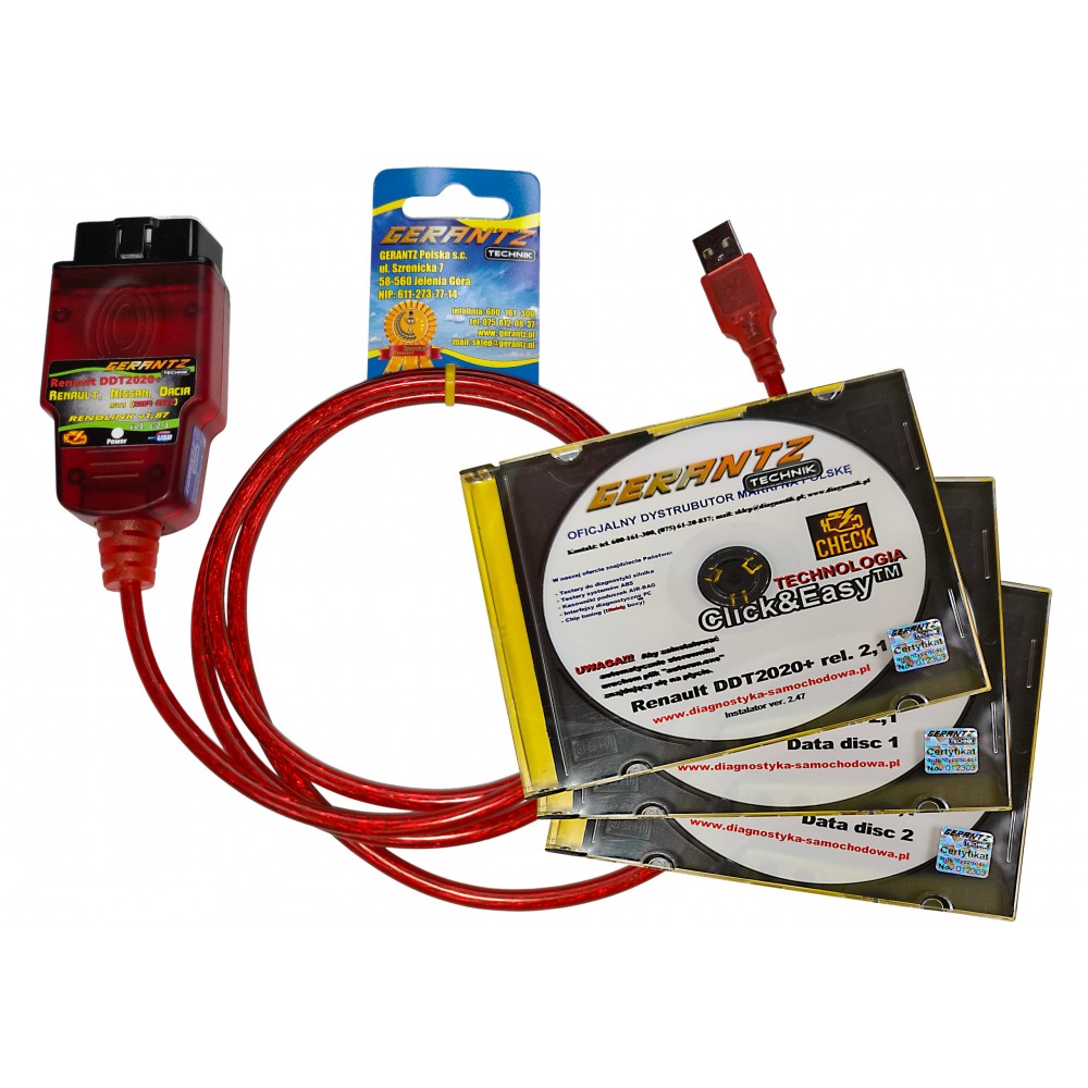 Interfejs diagnostyczny Renault DDT2020+ rel. 2.1 (Renolink) z wtykiem OBD2 to narzędzie zaprojektowane do diagnostyki pojazdów marek Renault, Nissan i Dacia. Zastępuje on urządzenie serwisowe RENAULT CLIP, używane w autoryzowanych stacjach diagnostycznych, przekształcając komputer PC w profesjonalne narzędzie diagnostyczne.