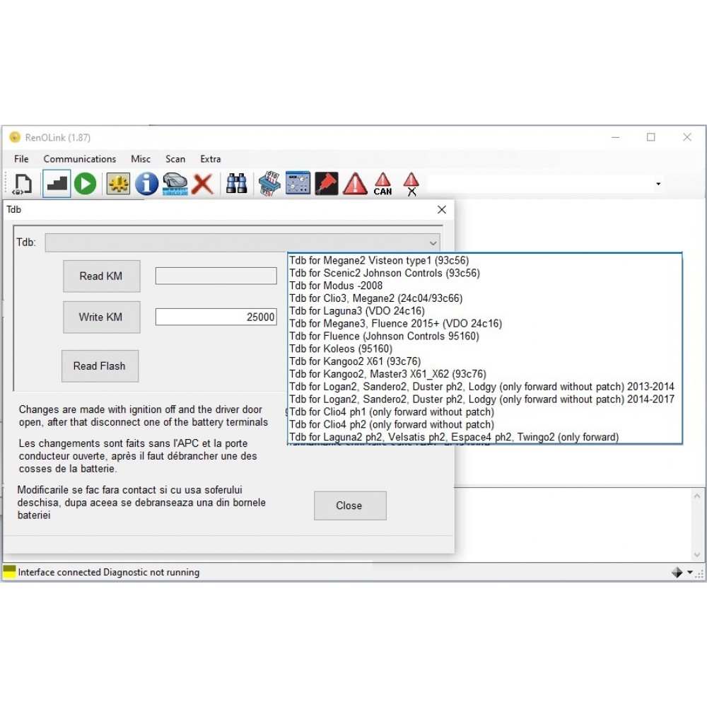 Najpopularniejszym programem współpracującym z interfejsem jest Renolink v1,99.